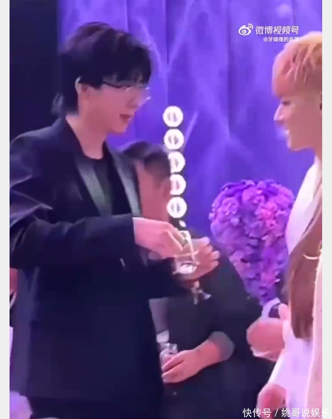 这可把现场宾客和屏幕前的网友都看懵了,难道新婚夫妻闹别扭?其实不然,刘宇宁不是伴郎,却从婚礼开场就拿着分酒器,全程当“挡酒盾”。原来他酒精过敏,分酒器里装的是0度气泡水,当天他刚结束直播就赶来,晚上还有工作要对接。